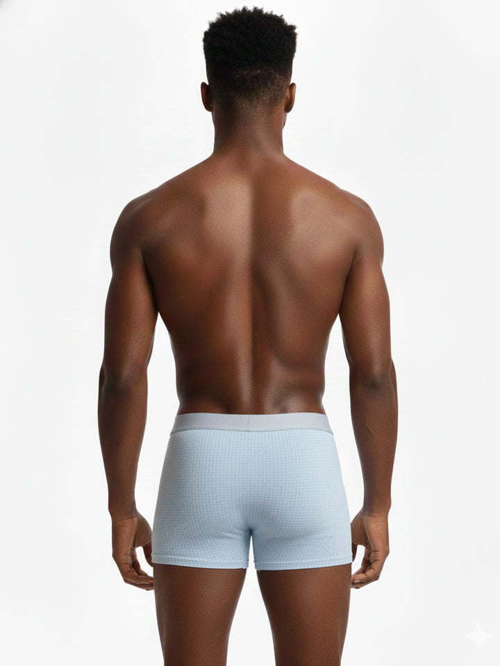 Desfrute de conforto em todas as estações com os nossos boxers curtos Waffle Modal melhorados. Confeccionados em Modal sedoso e macio e concebidos com uma estrutura de malha waffle arejada, este tecido é tão leve como o ar, absorvendo e libertando rapidamente a humidade para o manter seco. A recém-melhorada Bolsa Espaçosa Ventilada Dual-C oferece espaço generoso, fluxo de ar esquerdo-direito e um forro com controlo de odores para frescura durante todo o dia. Combinada com uma cintura em malha respirável que evita o acumular de calor, este design garante conforto duradouro — independentemente do clima, atividade ou estação.